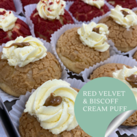 Another BEST SELLER from us. Flavors of Red Velvet and Biscoff. Crunchy on the top with a creamy custard fillings.