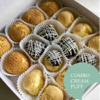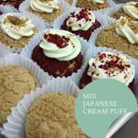 16 pieces in each box, combination of Custard Cream Puff, Profiteroles and Japanese Cream Puff.